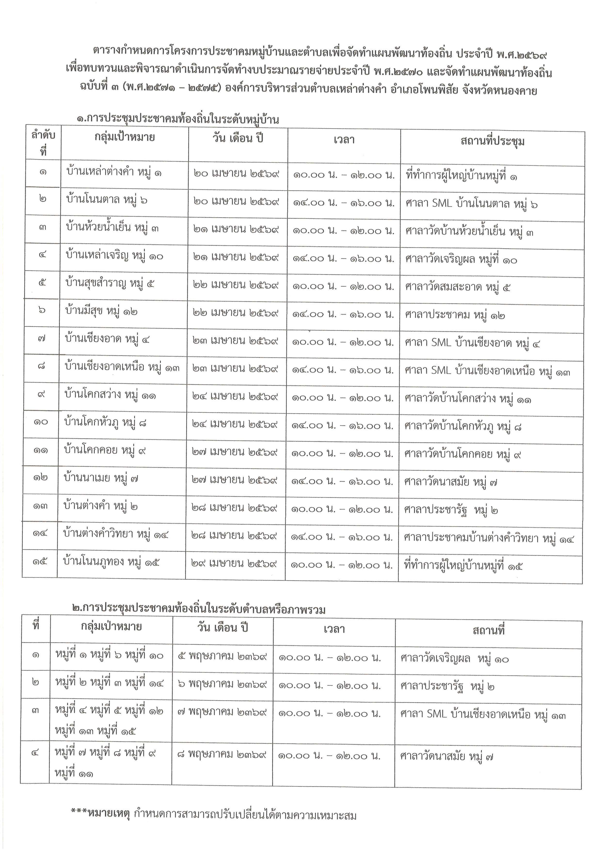 ประชาสัมพันธ์การออกประชุมประชาคมหมู่บ้านและตำบลเพื่อจัดทำแผนพำัฒนาท้องถิ่น ประจำปี พ.ศ.2569