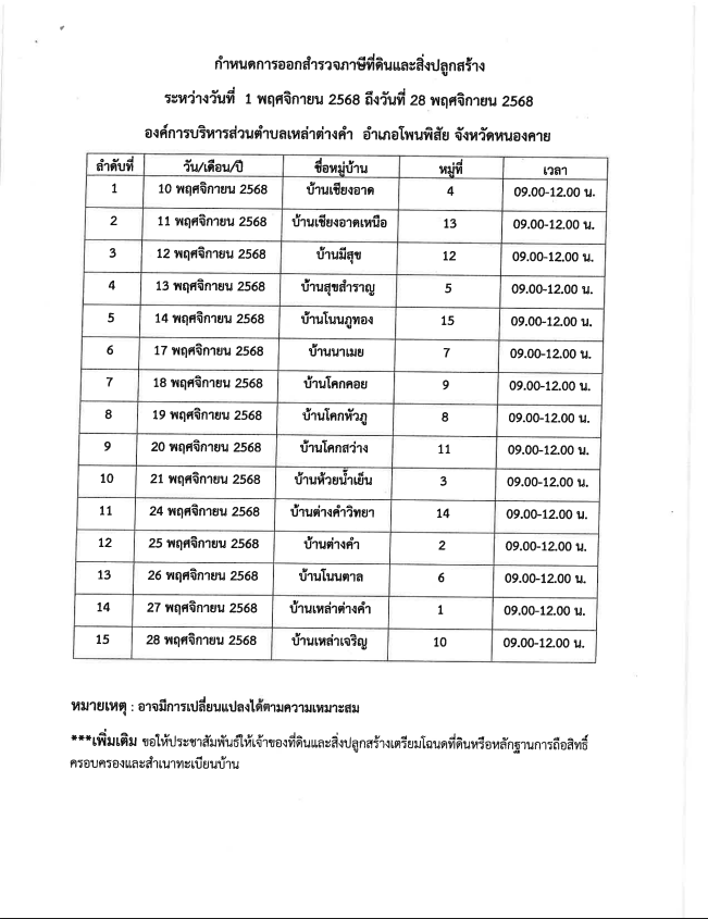 ประชาสัมพันธ์การออกสำรวจข้อมูลที่ดินและสิ่งปลูกสร้างเพื่อเพิ่มประสิทธิภาพการจัดเก็บรายได้ภาษีที่ดินและสิ่งปลูกสร้างประจำปีงบประมาณ 2569